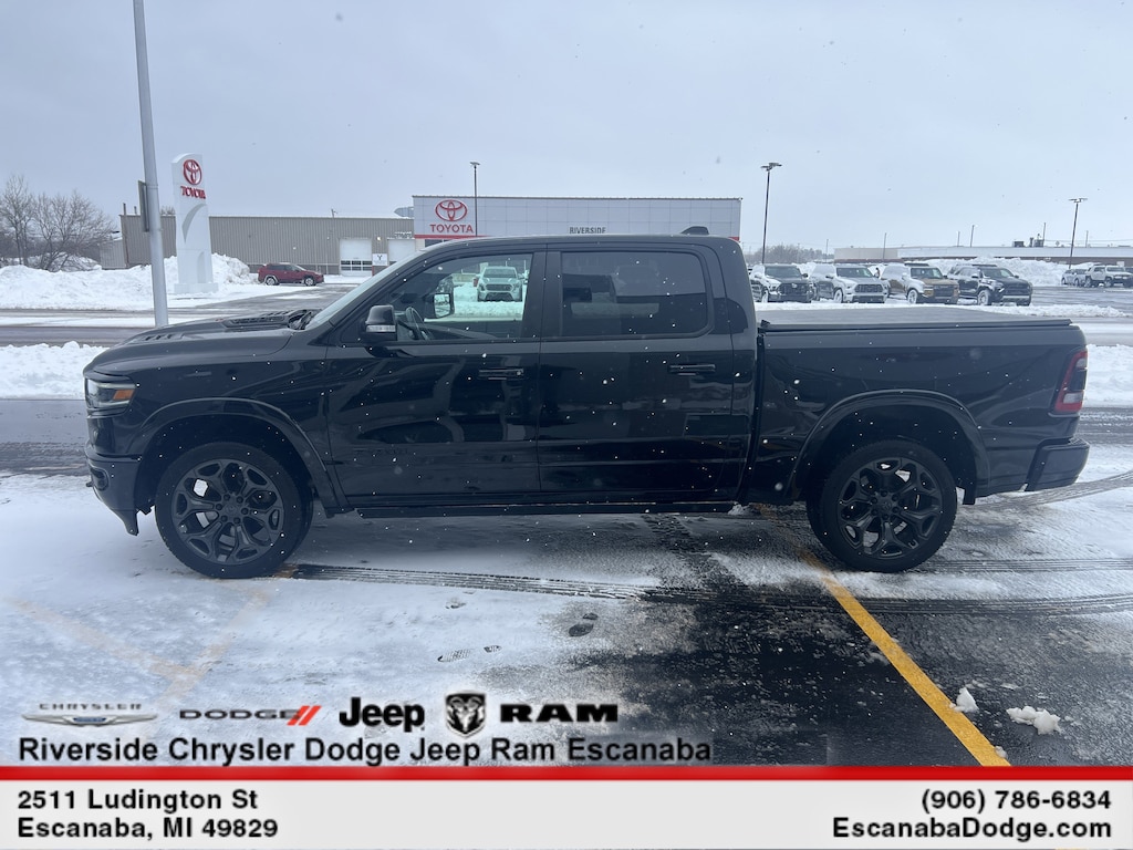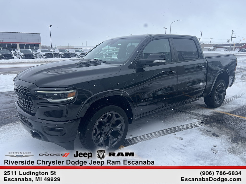 BLACK APPEARANCE PACKAGE Tri-Fold Tonneau Cover, Black Headlamp Bezels, Body Color Premium Power Mirrors, Sport Performance Hood, Body Color Door Handles, harman/kardon® 19 Speaker Premium Sound, Black Exterior Truck Badging, Black Day Light Opening Moldings, Tow Hooks, Body Color Exterior Mirrors, Dual Exhaust w/Black Tips, Body Color Front Bumper, Black Grille Surround Texture 7 Chrome, Body Color Rear Bumper w/Step Pads, RAM Grille Badge - Black, LIMITED LEVEL 1 EQUIPMENT GROUP Adaptive Cruise Control w/Stop & Go, Parallel & Perp Park Assist w/Stop, Ventilated Rear Seats, Full Speed Forward Collision Warning Plus, Lane Keep Assist, ENGINE: 5.7L V8 HEMI MDS VVT Active Noise Control System, Heavy Duty Engine Cooling, GVWR: 7,100 lbs, Dual Rear Exhaust w/Bright Tips, Hemi Badge, 220 Amp Alternator, 600W Engine Cooling Fan, DUAL-PANE PANORAMIC SUNROOF LED Dome/Reading Lamp, Dome Dual LED Reading Lamp, TRANSMISSION: 8-SPEED AUTOMATIC (8HP75). Ram Limited with Diamond Black Crystal Pearlcoat exterior and Black interior features a 8 Cylinder Engine with 305 HP at 6400 RPM*.