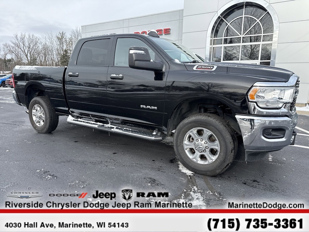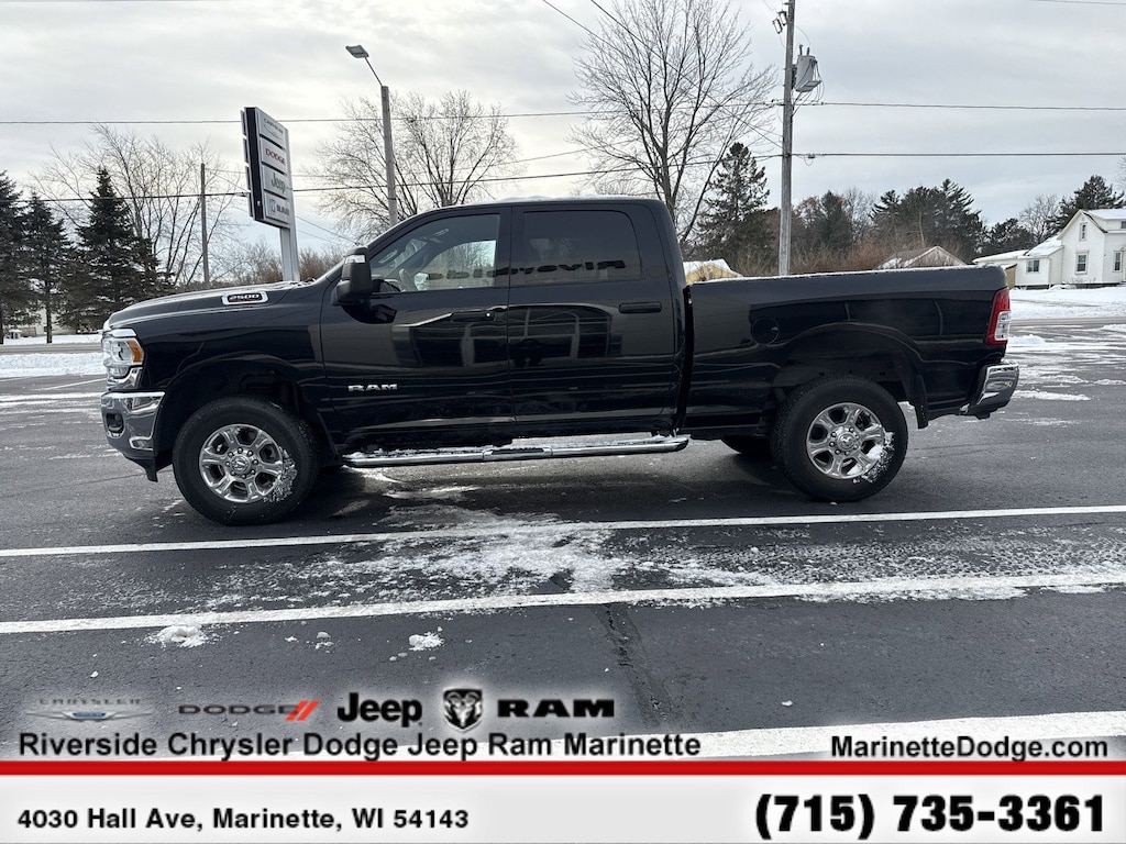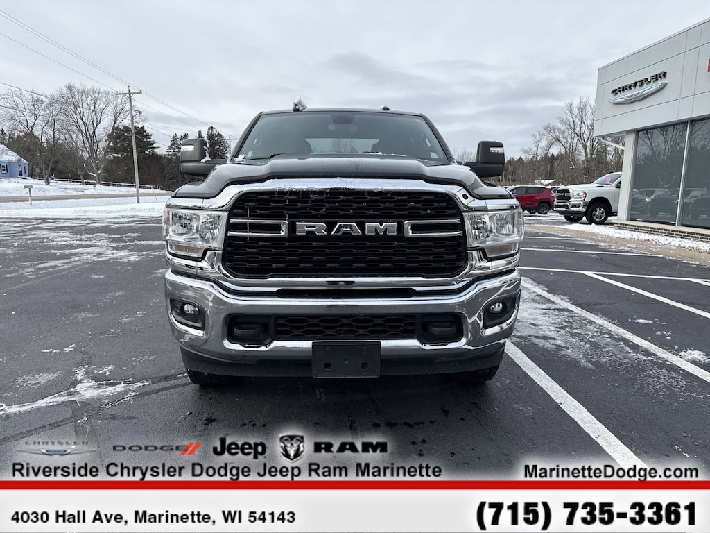 DIESEL GRAY/BLACK, PREMIUM CLOTH 40/20/40 BENCH SEAT Storage Tray, Rear 60/40 Folding Seat, Front Armrest w/Cupholders, Remote USB Port - Charge Only, Front Center Seat Cushion Storage, Manual Adjust 4-Way Front Passenger Seat, Power Adjust 8-Way Driver Seat, Front Seat Back Map Pockets, Power 2-Way Driver Lumbar Adjust, CHROME FLAT CAB-LENGTH SIDE STEPS, 9 ALPINE SPEAKERS W/SUBWOOFER, ANTI-SPIN DIFFERENTIAL REAR AXLE, PROTECTION GROUP Transfer Case Skid Plate Shield, Tow Hooks, LEVEL 1 EQUIPMENT GROUP Google Android Auto®, For Details, Visit DriveUconnect.com, For More Info, Call 800-643-2112, Leather Wrapped Steering Wheel, Rear Dome w/On/Off Switch Lamp, Front Fog Lamps, Glove Box Lamp, Auto Power-Folding Mirrors, Footwell Courtesy Lamp, 4G LTE Wi-Fi Hot Spot, Mirror Running Lights, Radio: Uconnect 5 W w/8.4 Display, 8.4 Touchscreen Display, Foam Bottle Insert (Door Trim Panel), Wheels: 18 x 8.0 Polished Aluminum, Apple CarPlay®, Big Horn IP Badge, Power Adjustable Convex Aux Mirrors, Forward & Reverse Utility Lights, Locking Lower Glove Box, Selectable Tire Fill Alert, SiriusXM Satellite Radio, Power Heated Fold Telescope Mirrors, Exterior Mirrors w/Supplemental Signals, Steering Wheel Mounted Audio Controls, Exterior Mirrors Courtesy Lamps, Dual Glove, TRANSMISSION: 8-SPEED AUTO (8HP75-LCV) (STD), ENGINE: 6.4L V8 HEAVY DUTY HEMI MDS (STD).